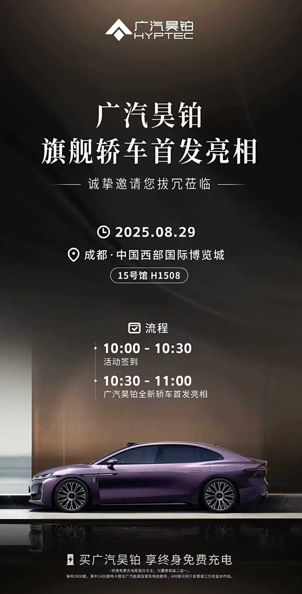 IT之家 8 月 25 日消息,广汽昊铂旗舰轿车将于 2025 成都车展首发,从海报上看预计为此前申报的昊铂 A8,该车搭载增程动力系统。